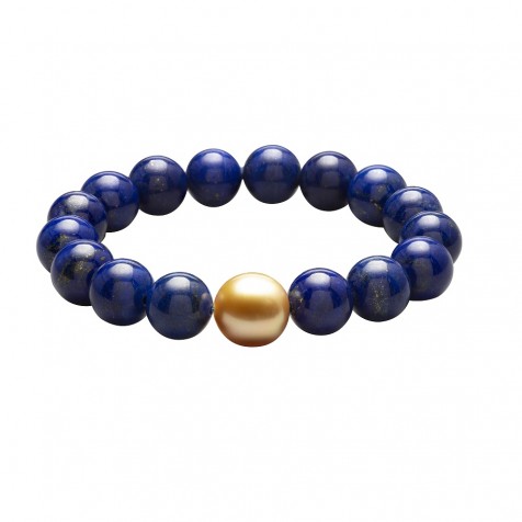 每件特選首飾包括剛陽味十足的青金石圓珠手鏈及皮帶手鏈,以及設計獨特的胸針和簡約的袖扣等,都鑲有一顆珠光溫潤的南洋金珠。