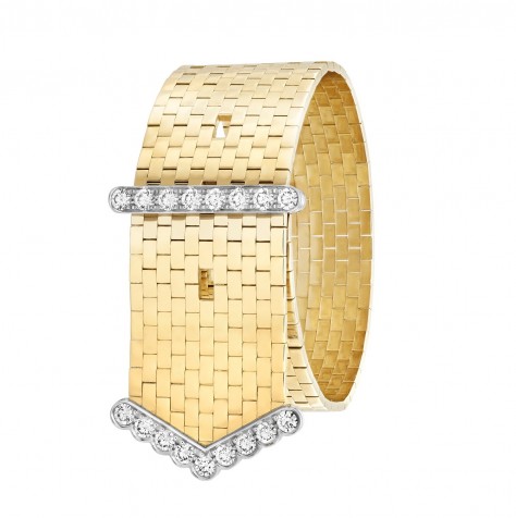 手鐲以磚狀和六邊形圖案組成,輕巧柔軟。品牌表示:「這些圖案經仔細鑲嵌,然後逐一微調,讓每個一顆能靈活轉動,呈現纖巧柔美之感。次嚴謹工序確保手鐲流麗生動,穿戴舒適。」