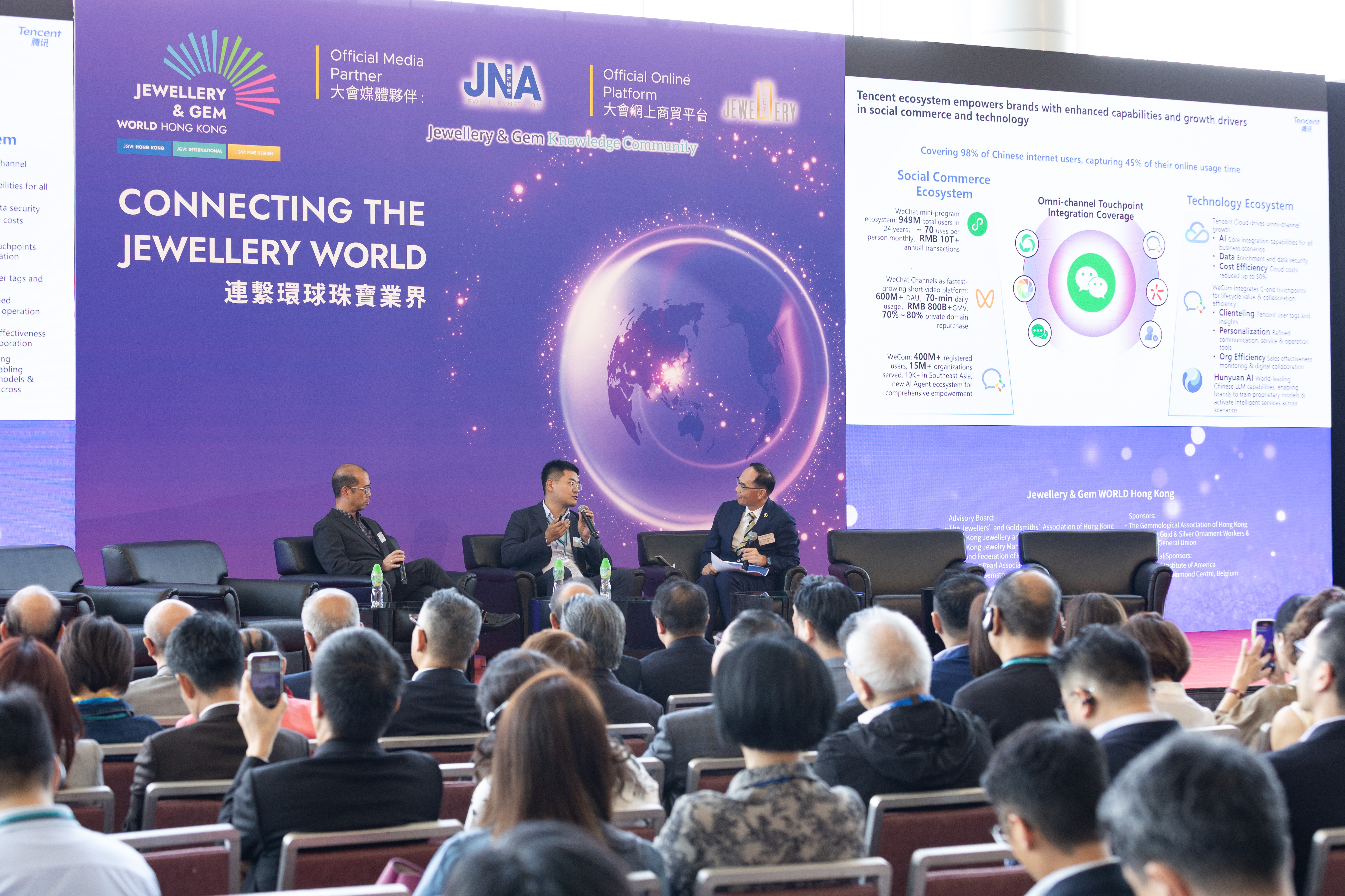 會議亦設有專題環節,探討數碼科技如何革新珠寶零售業。由「香港珠寶首飾業商會」主席黃紹基先生主持,並邀請周大福首席品牌官陳義邦先生及騰訊智慧零售行業總經理李洋先生參與討論。講者分享了智能零售方案如何提升營運效率、推動業務增長及加強顧客互動。