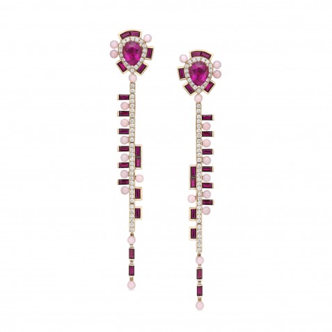 據品牌表示,充滿生氣的梨形寶石安置於具有豐富紫紅色、仲夏黃、深藍及艷綠色的首飾之上,而俏皮排列的細長形及珠形寶石則仿製了錐形的花朵。從浪漫粉色到靈性藍色,每種色彩組合都反映了一種個性。系列的耳釘可轉變成長耳墜,加入鑽石及寶石令其典雅而華麗。
